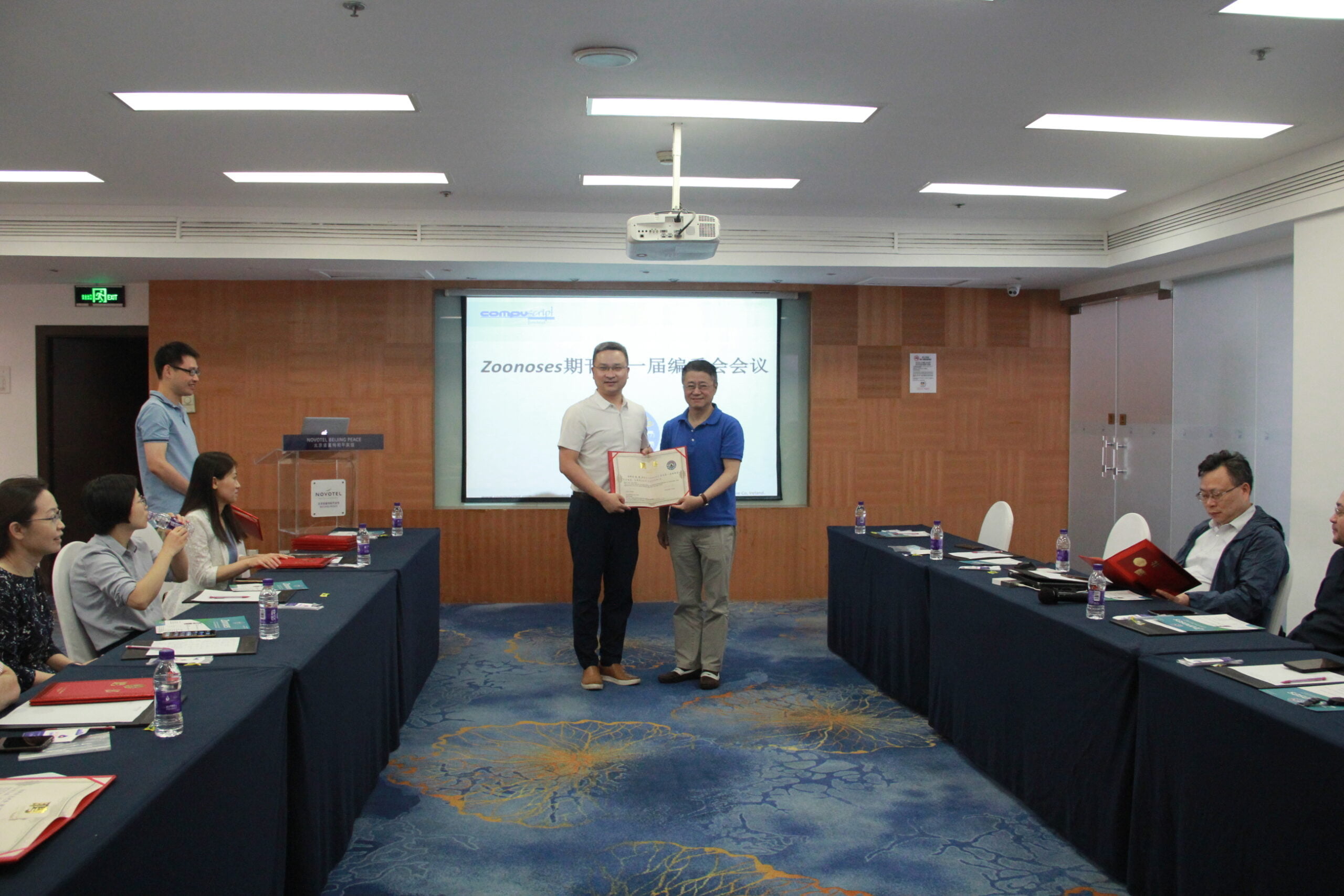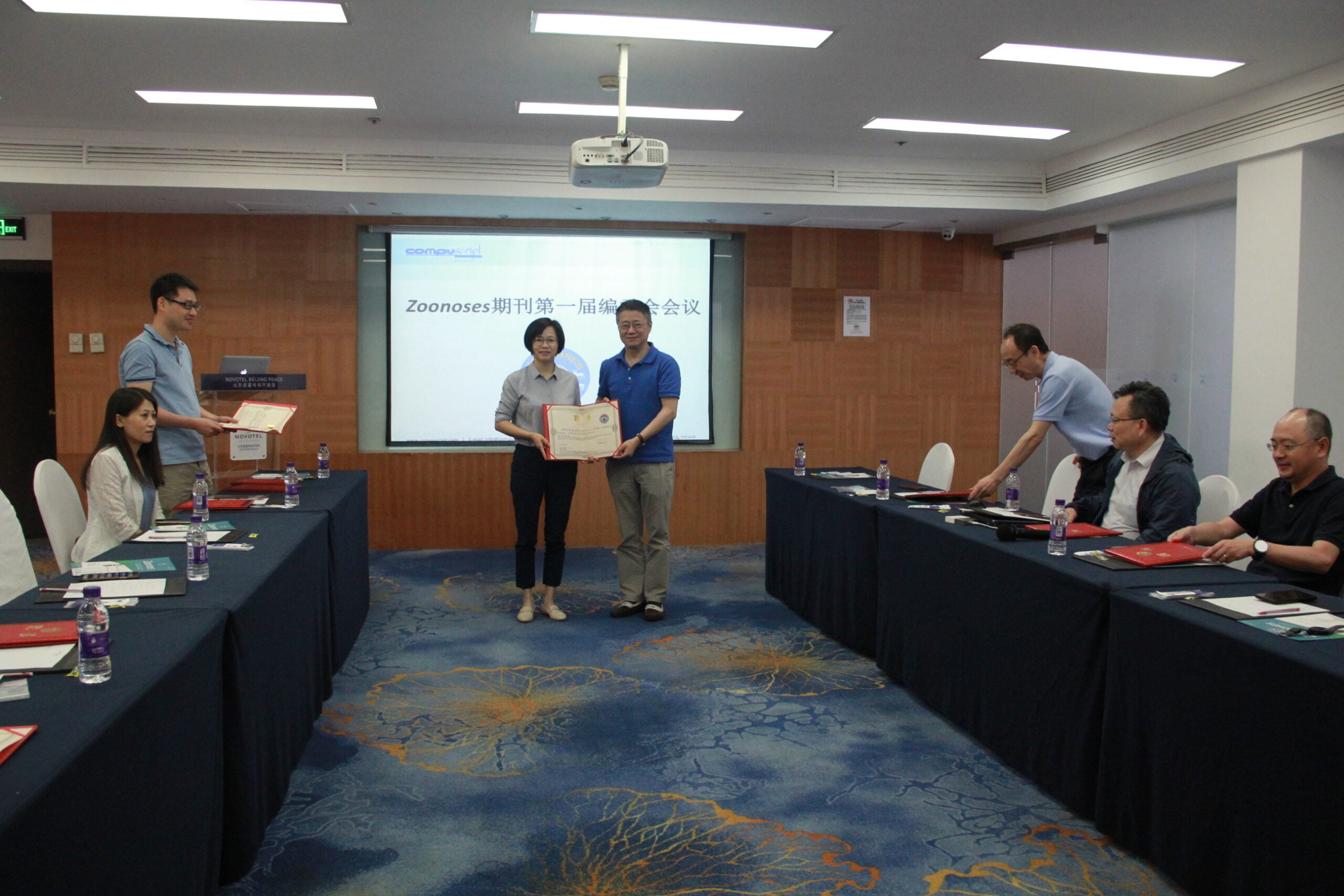 On June 19, 2021, Zoonoses editorial board meeting was held in Beijing, China. The meeting was hosted by Zoonoses Co-Editor-in-Chief, Xiaoping Dong and attended by Deputy-Editors-in-Chief Xingquan Zhu and Hua Li, Managing Editor Wei Wang and other editorial board members.Professor Xiaoping Dong addressing the meeting